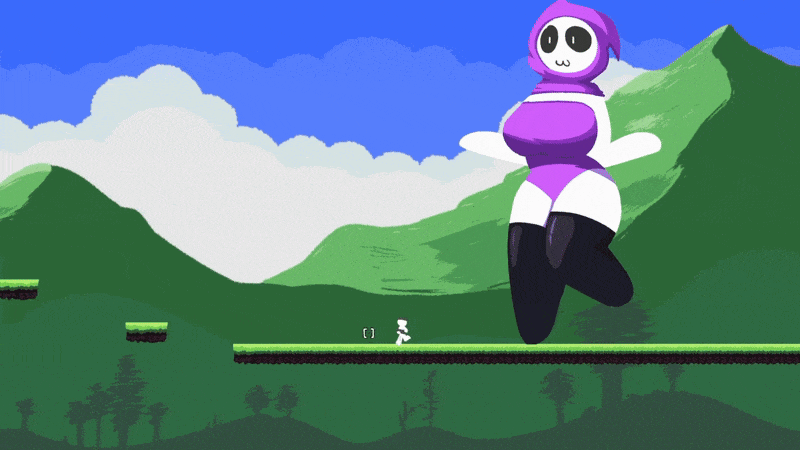 A lewd platformer game featuring rocket jump, a giantess and a giant cat.